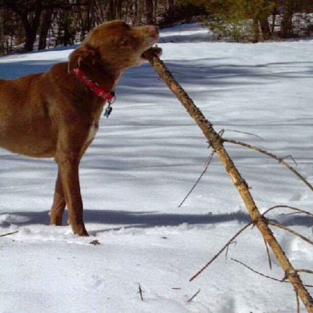 Max gets distracted by sticks. He will not be running in any races. Earlier this morning Dallas Seavey won the Iditarod dog sled race. As